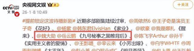 然而没想到,岳云鹏的这句话说完落地半年左右,临近春晚之际。 央媒“央视网文娱”就用文字,替他的新戏《九号秘事之黑帷背后》做宣传了。