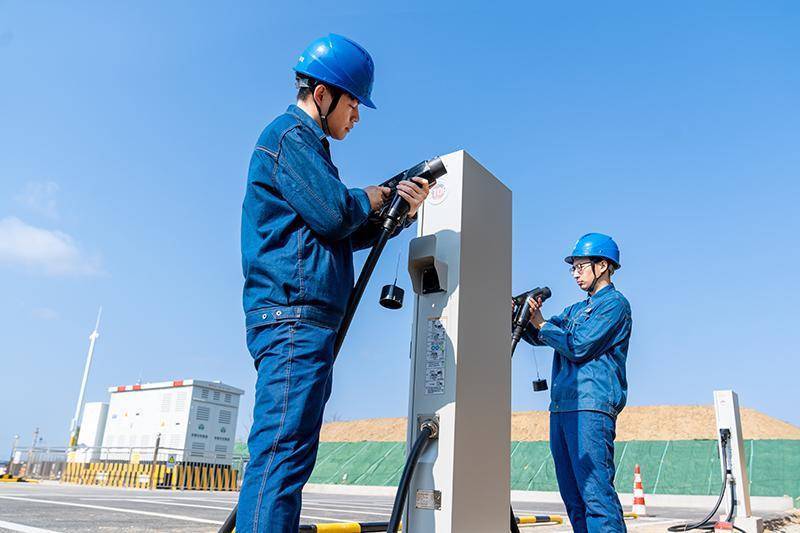 供电人员对新启用的充电站进行检测。魏成龙摄